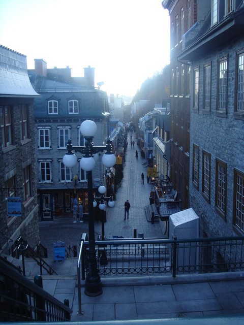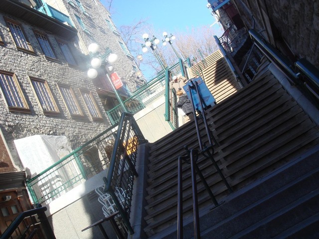 以前的魁北克的碼頭工人爬了長長的階梯到上城去喝完酒,